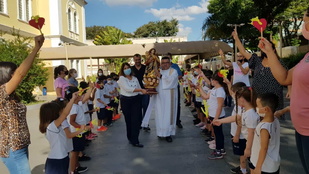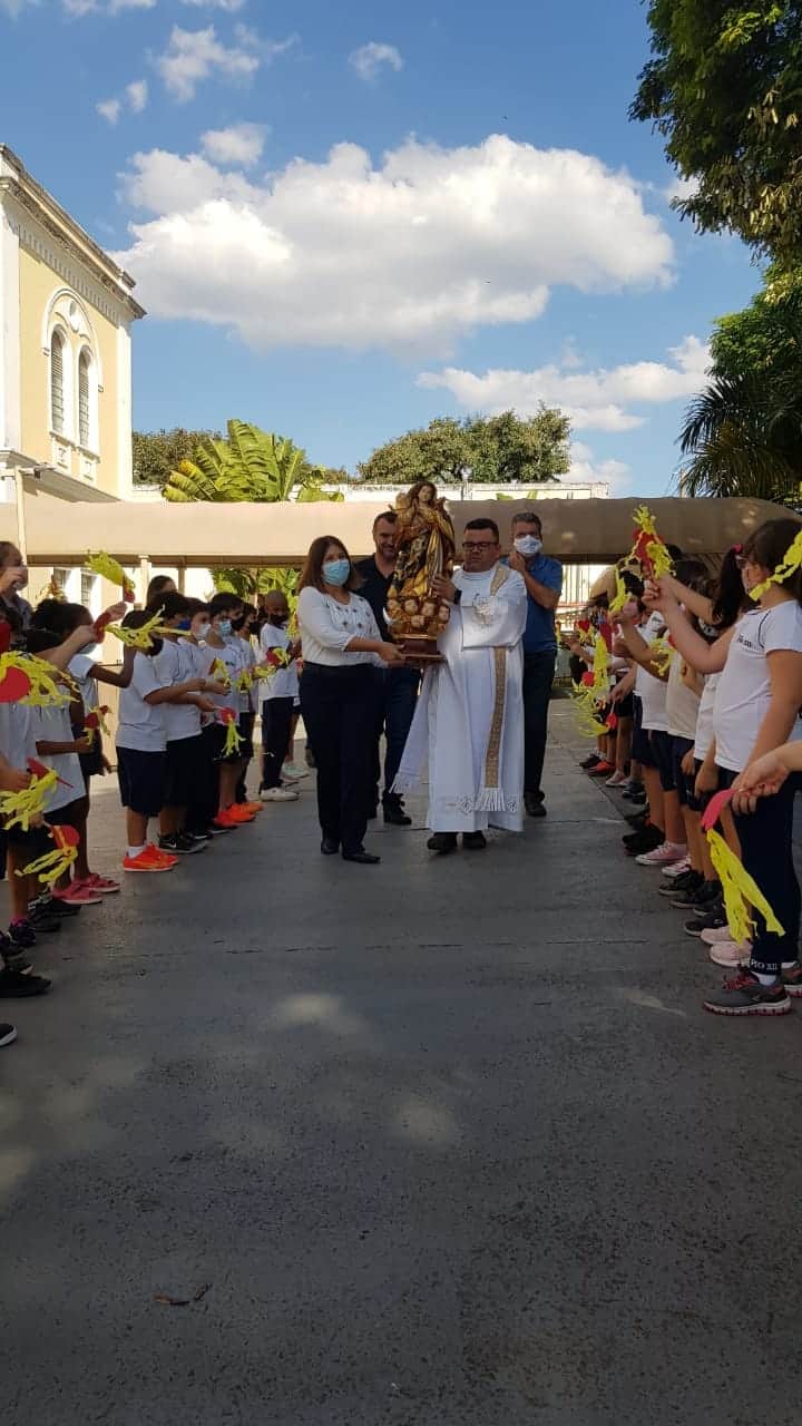 Chegada da Imagem da Imaculada Conceição ao Colégio, hoje, iniciando a Peregrinação nas escolas católicas de Campinas em comemoração ao Jubileu dos 250 anos da Catedral Metropolitana.